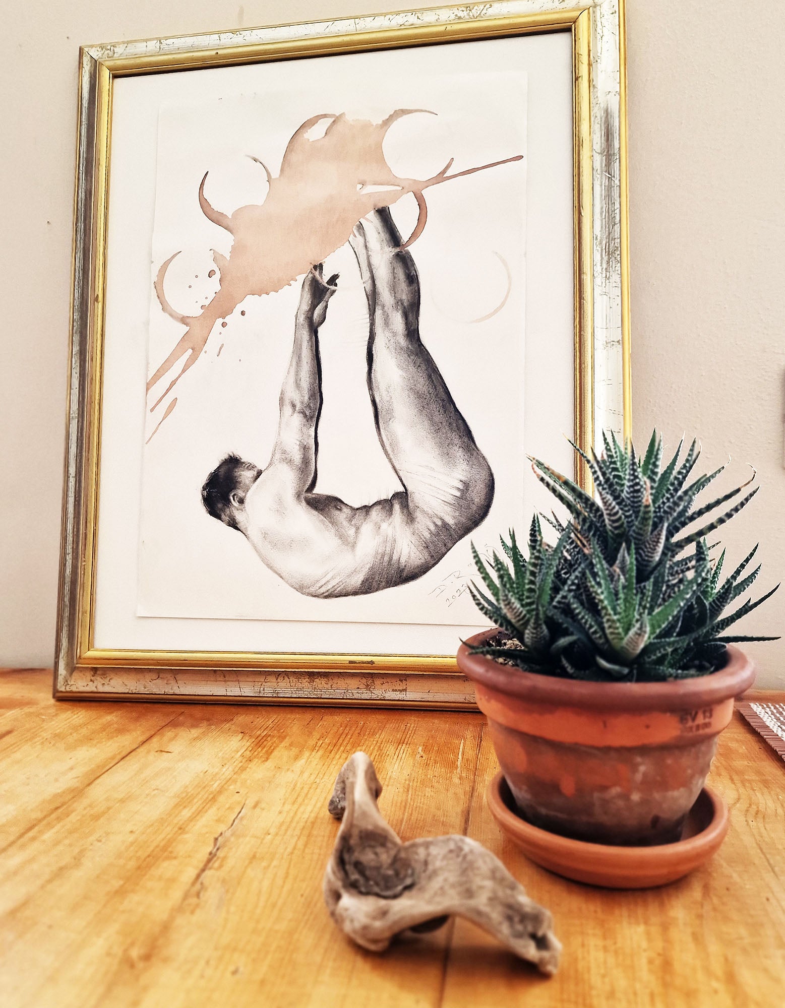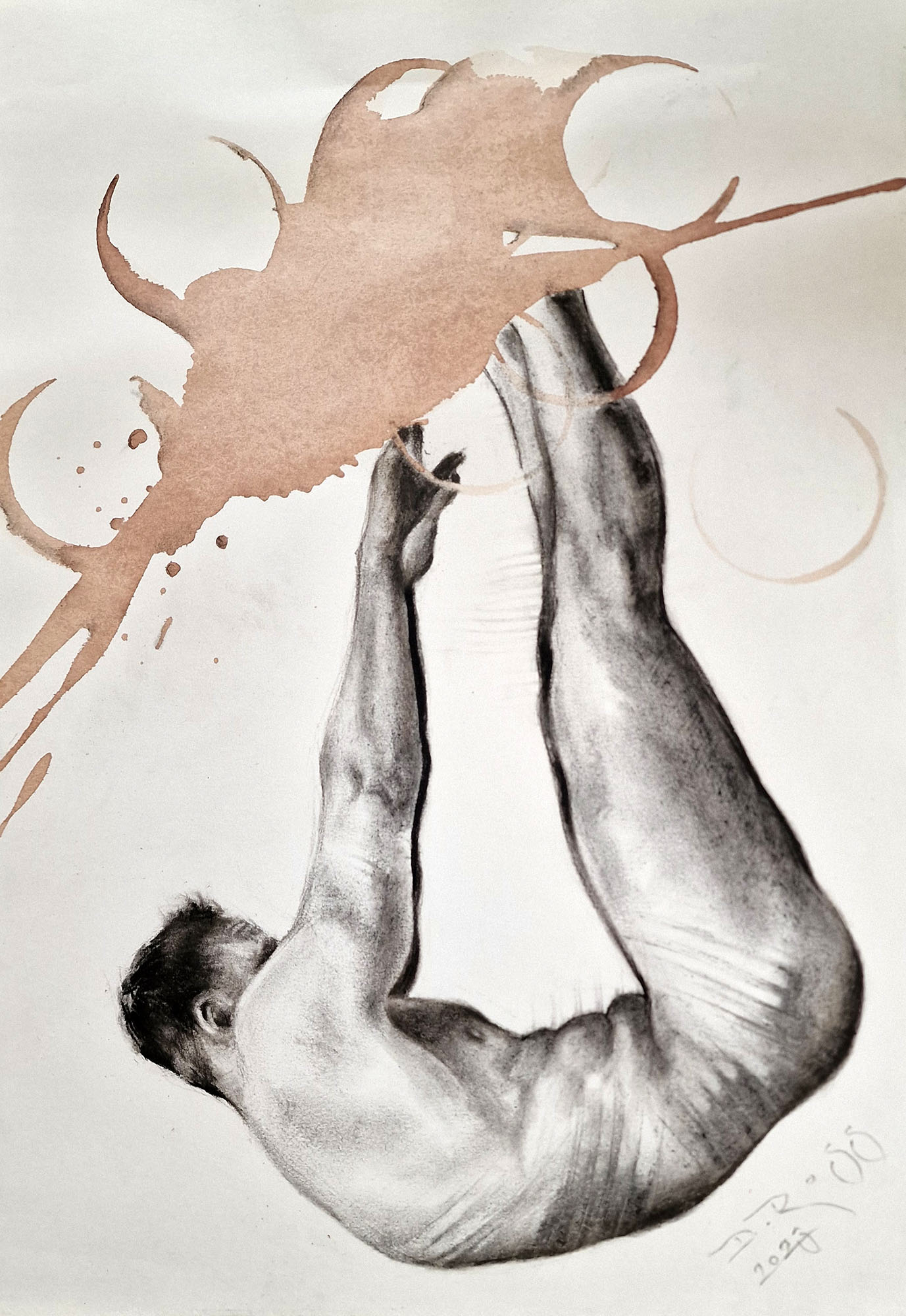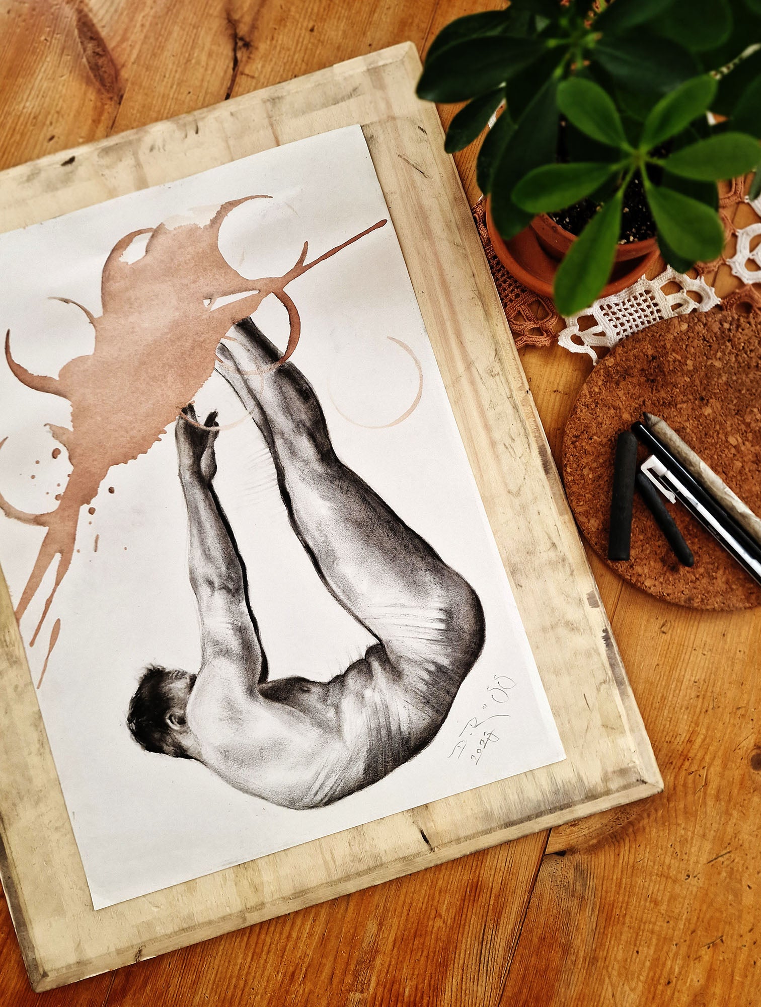 Drawing Of A Nude Male Figure "Fondo Tondo" – Charcoal & Chianti Series