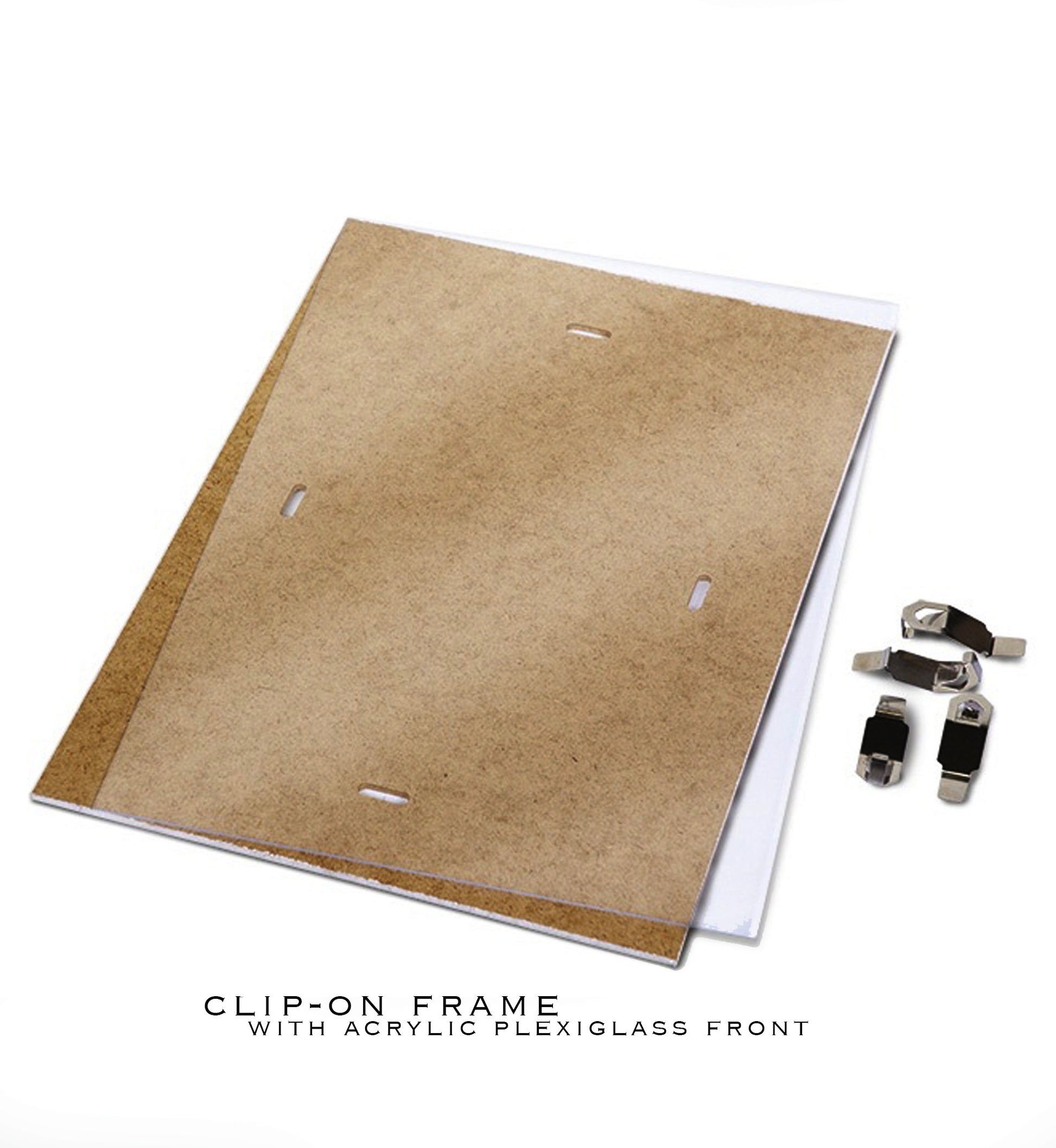 - Shipped in a clip-on frame with acrylic plexiglass front (weight ca. 300–560g/0.5–1.2lb)