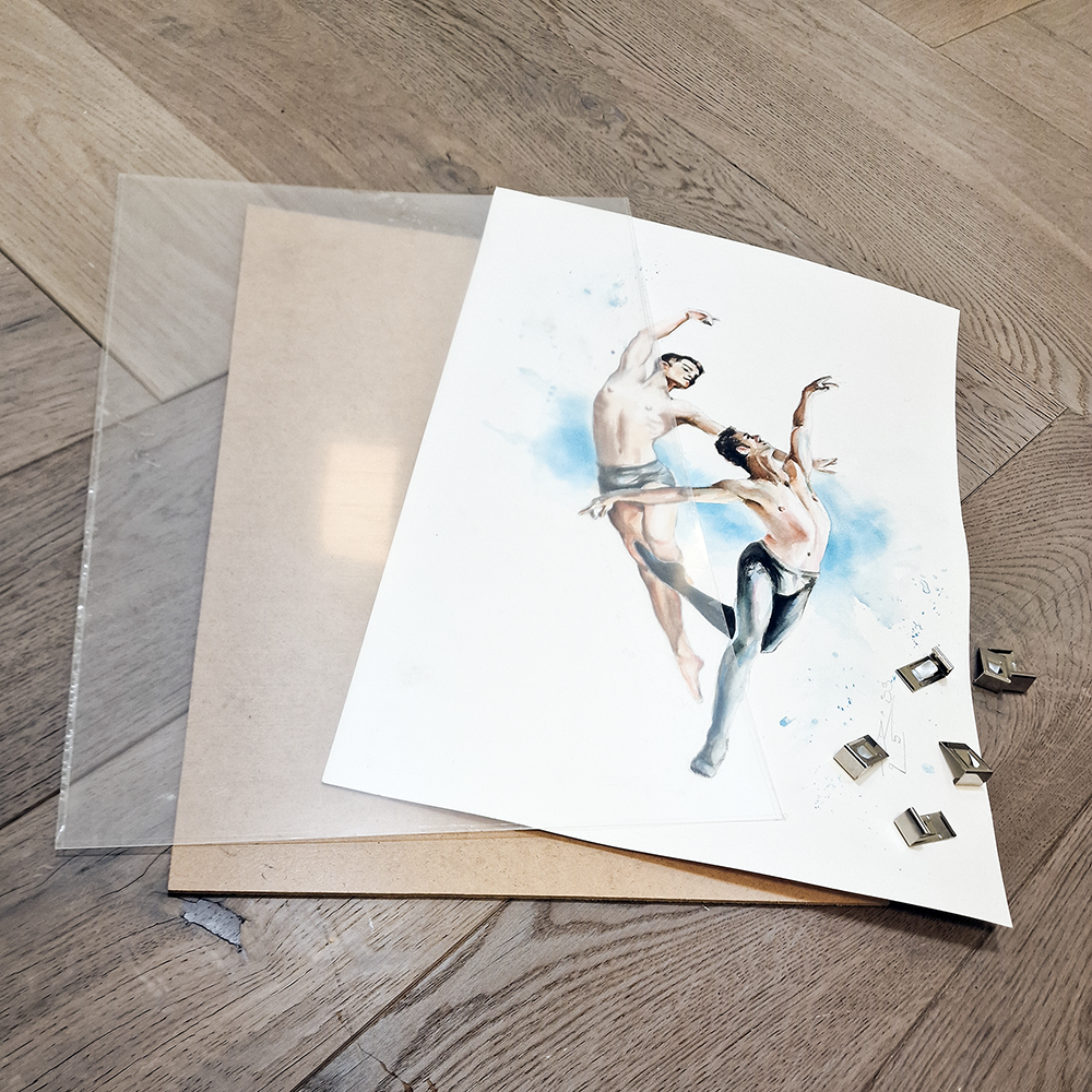 - Framed: Clip-on frame with plexiglass. The black MDF frame is not included.