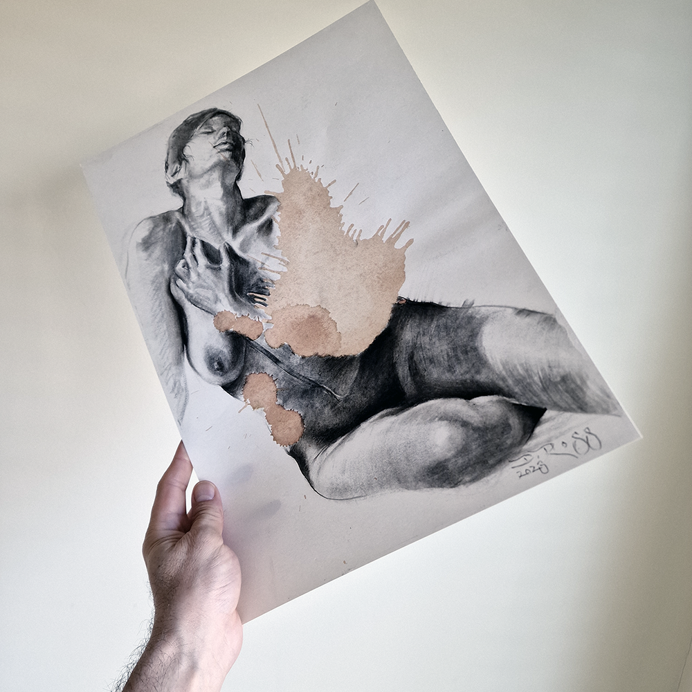 - Charcoal on paper stained with Chianti wine, 40x30cm (15.7″x11.8″)