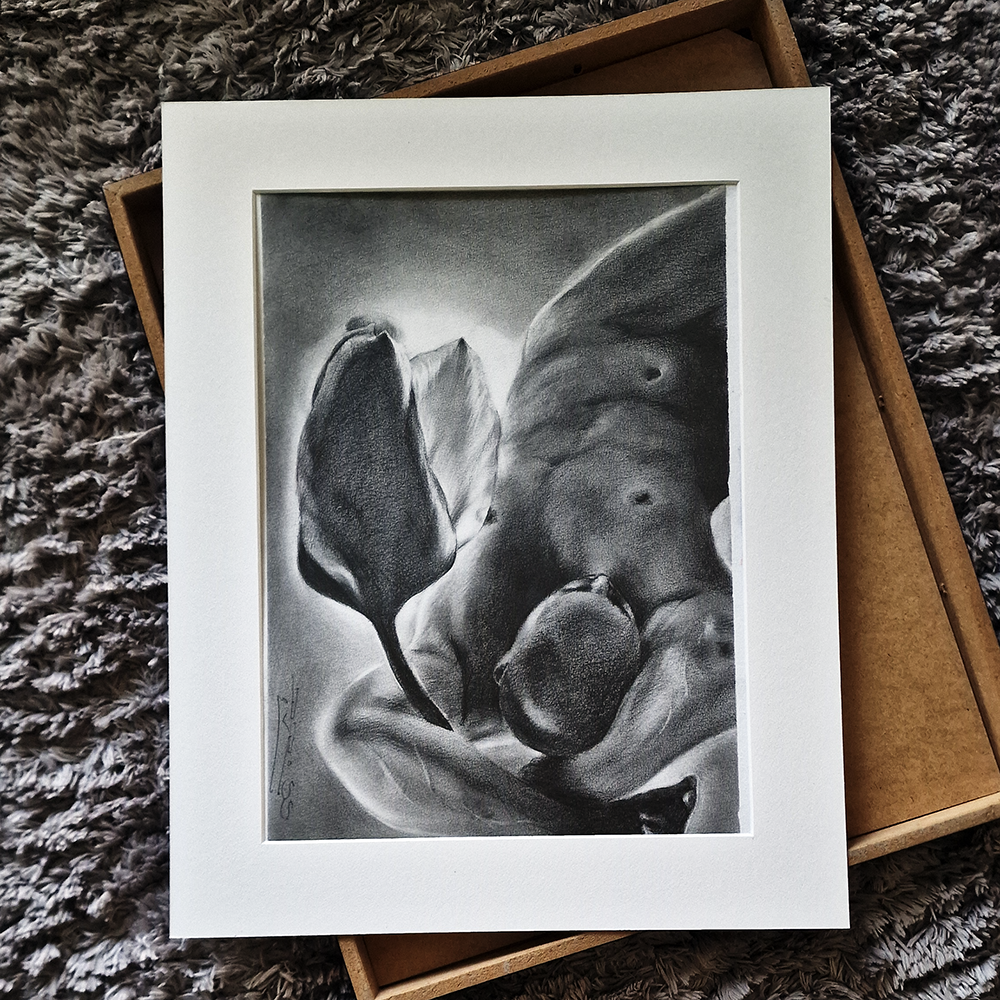 Genesis of Bloom | Baroque Male Figure & Tulip in Graphite Drawing